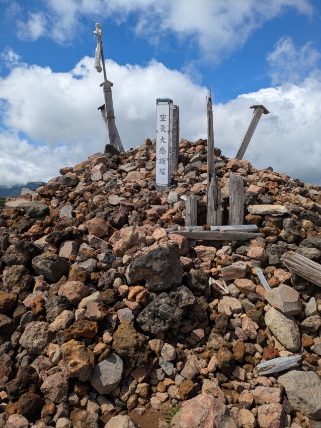 頂上付近はザレており、少々、悪戦苦闘。下山してくる若者達に「もうすぐ山頂ですよ~。めっちゃ綺麗ですよ。頑張って」と、励まされました。
